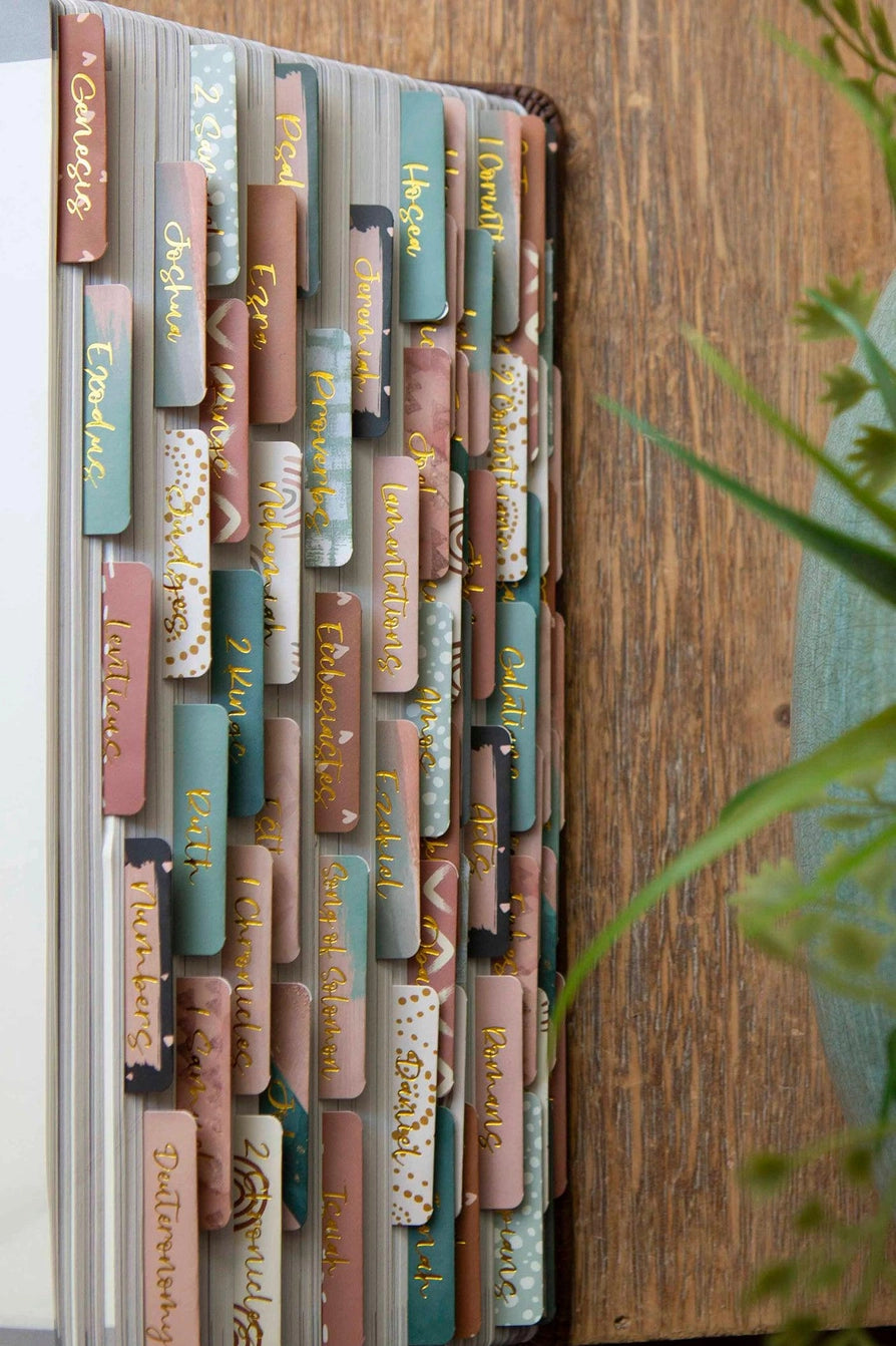 The Bible indexing tabs will not only add beauty but also help you find passages with ease. Plus, the peel-and-stick Bible tabs are made of thick cardstock material and have a matte lamination, enabling your Bible tabs to stay beautiful for many years.